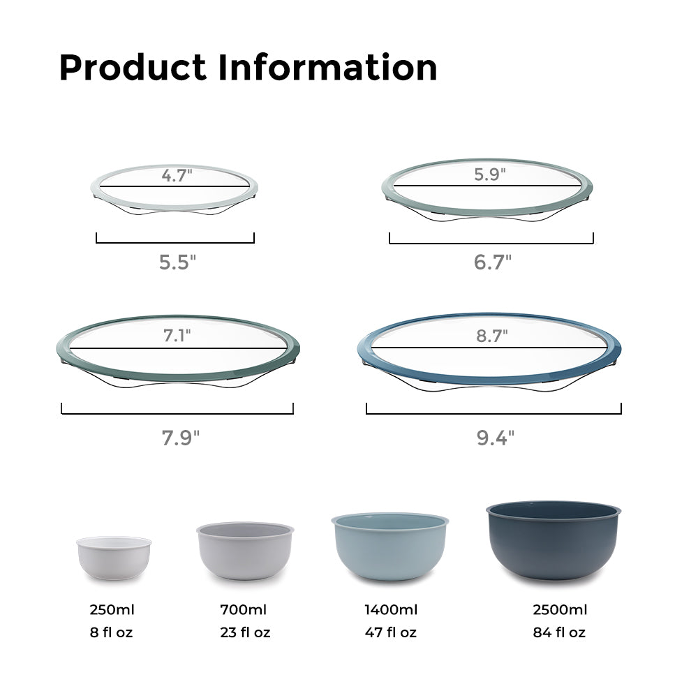 Bowl Sizes: S: 8 fl oz (250ml) / M: 23 fl oz (700ml) / L: 47 fl oz (1400ml) / XL: 84 fl oz (2500ml)